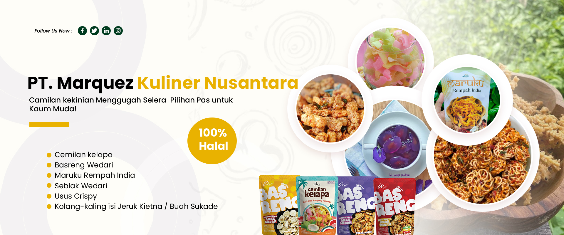 Perusahaan kami berawal dari seorang ibu tunggal yang menafkahi kedua anaknya seorang diri, dari background ini yang membuat marquez foods ini berkomitmen untuk memberdayakan para perempuan khususnya ibu tunggal yang membantu mencari nafkah untuk keluarganya